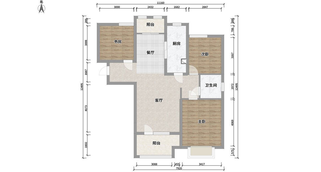 閱海府邸105㎡三室兩廳戶型平面布局圖
