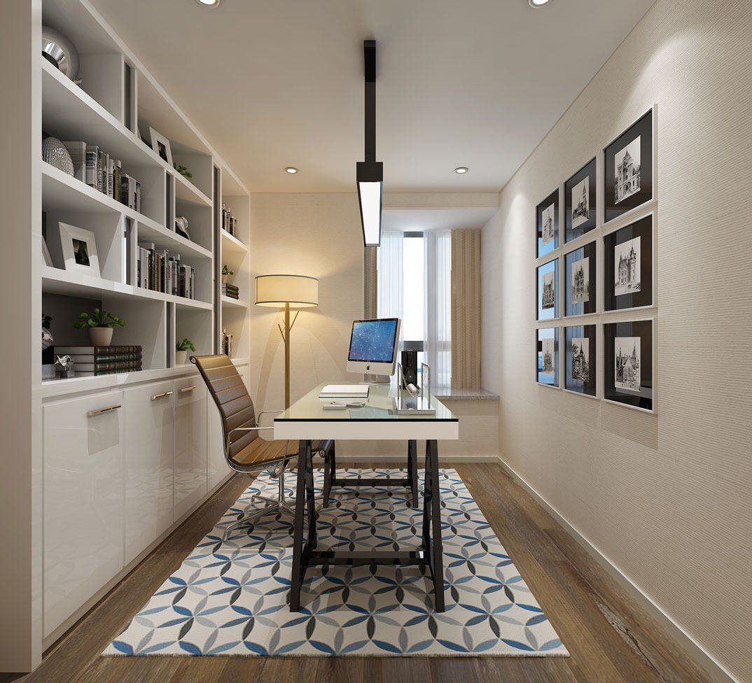 閱海府邸105㎡三室兩廳書房輕奢風(fēng)格裝修案例效果圖