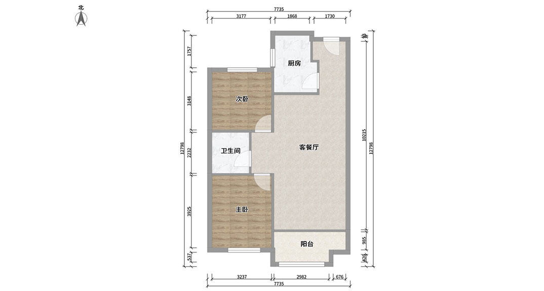 御景新苑90㎡兩室兩廳戶型平面布局圖