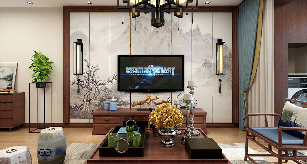 御景新苑90㎡兩室兩廳客廳電視新中式風(fēng)格裝修案例效果圖