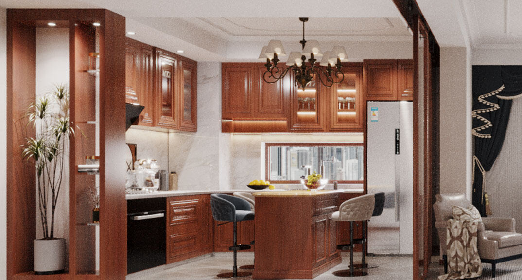 康儲景泰尚都100㎡三室兩廳客餐廳美式風格裝修案例效果圖