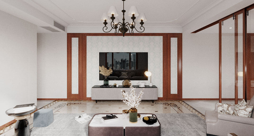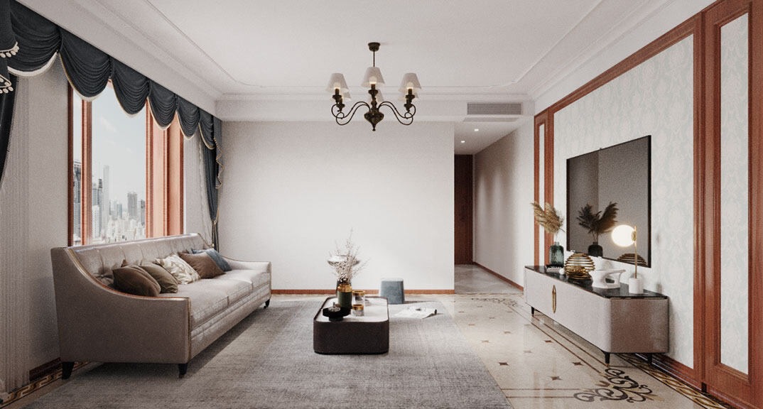 康儲景泰尚都100㎡三室兩廳客廳電視美式風格裝修案例效果圖