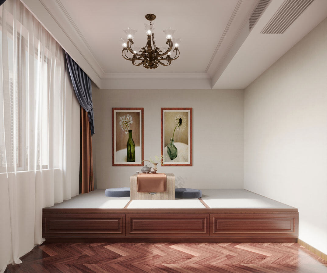 康儲景泰尚都100㎡三室兩廳榻榻米美式風格裝修案例效果圖