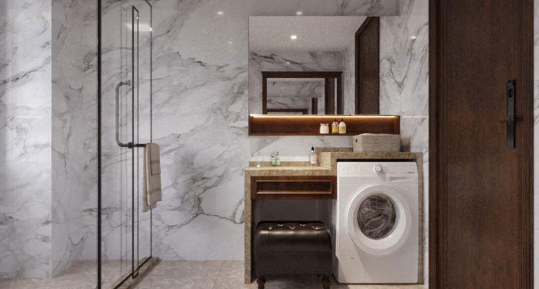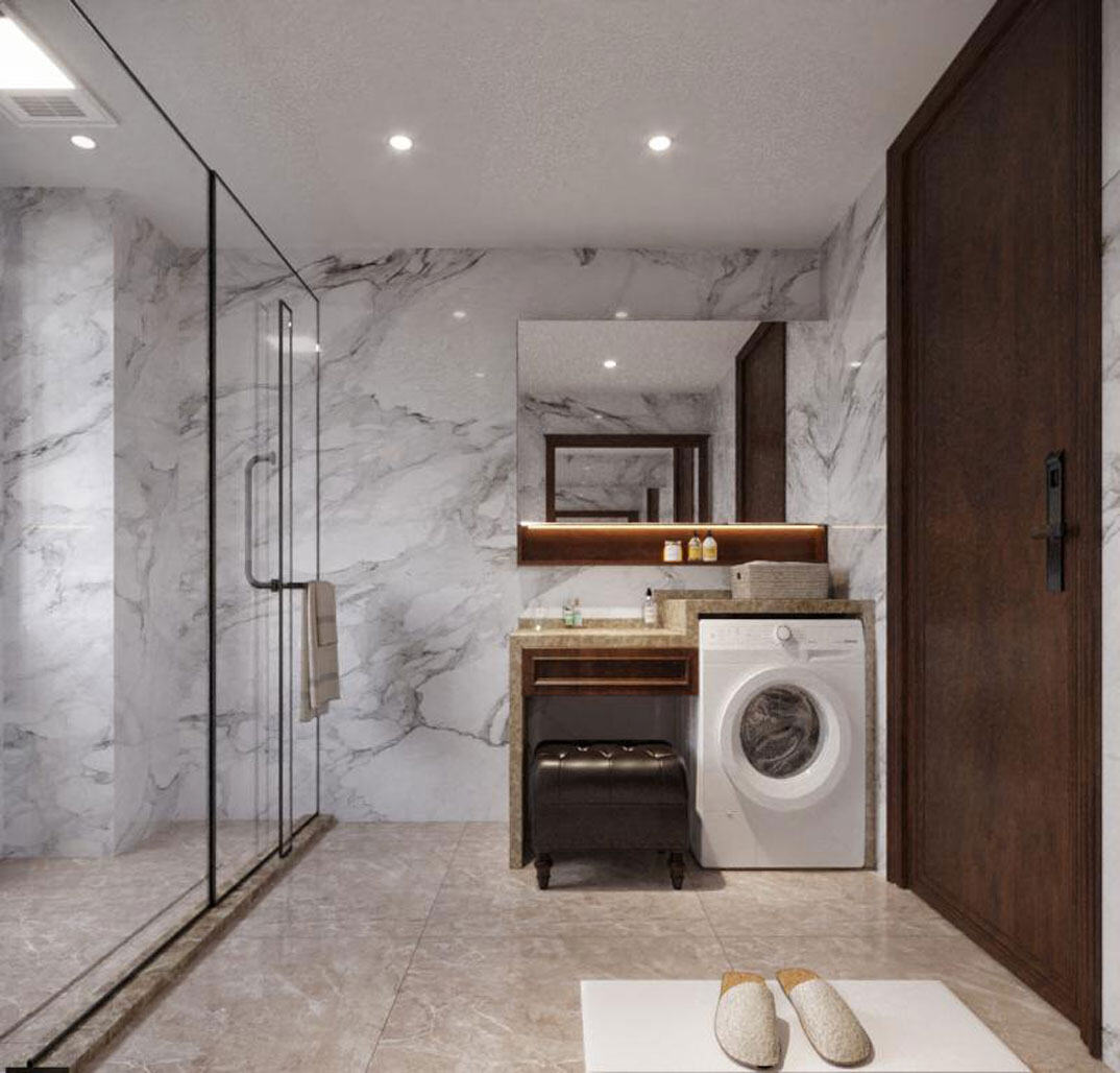康儲景泰尚都100㎡三室兩廳衛(wèi)生間美式風格裝修案例效果圖