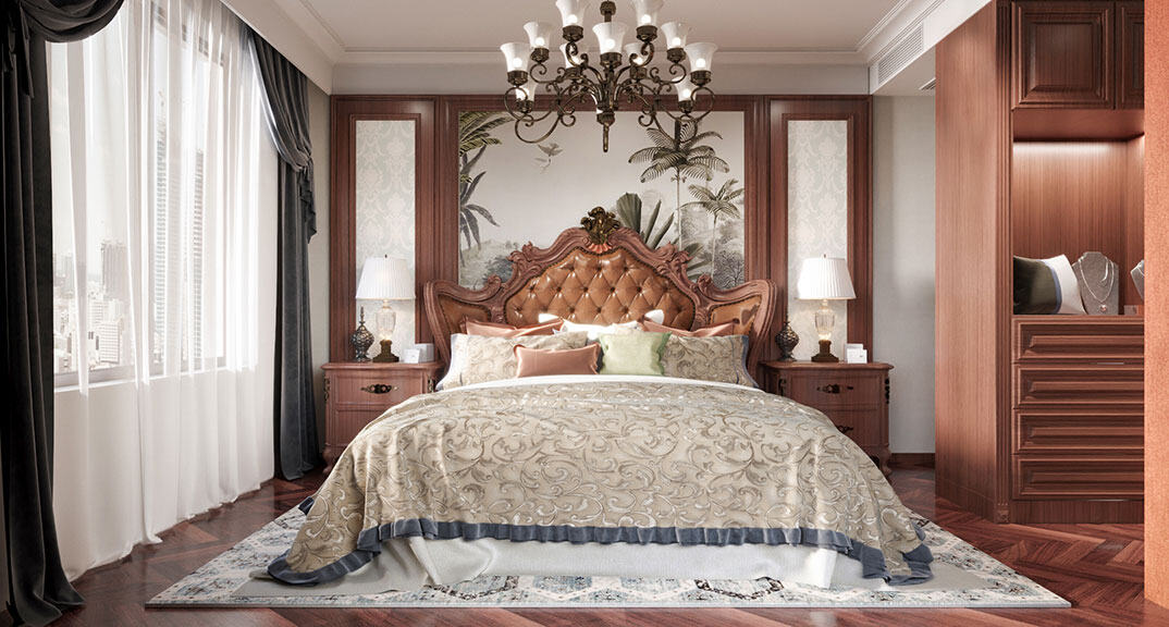 康儲景泰尚都100㎡三室兩廳臥室美式風格裝修案例效果圖