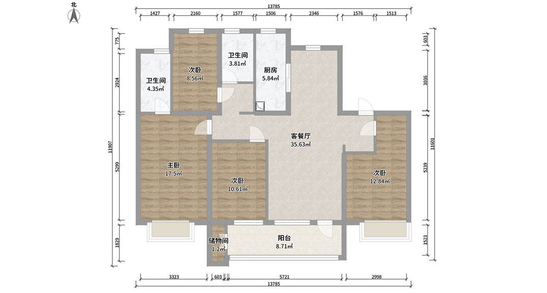 依云四季138㎡四室兩廳次臥新中式風(fēng)格戶型研發(fā)案例效果圖