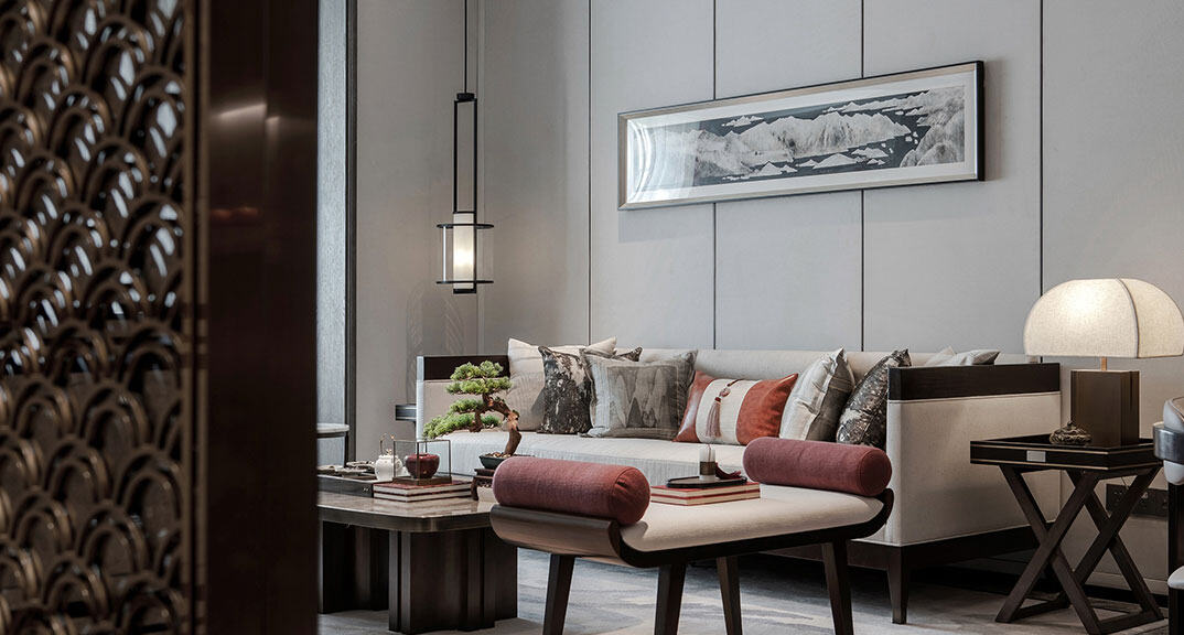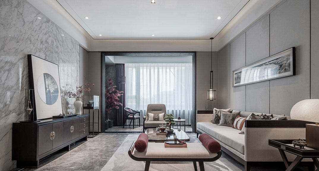 依云四季138㎡四室兩廳客廳沙發(fā)新中式風(fēng)格戶型研發(fā)案例效果圖