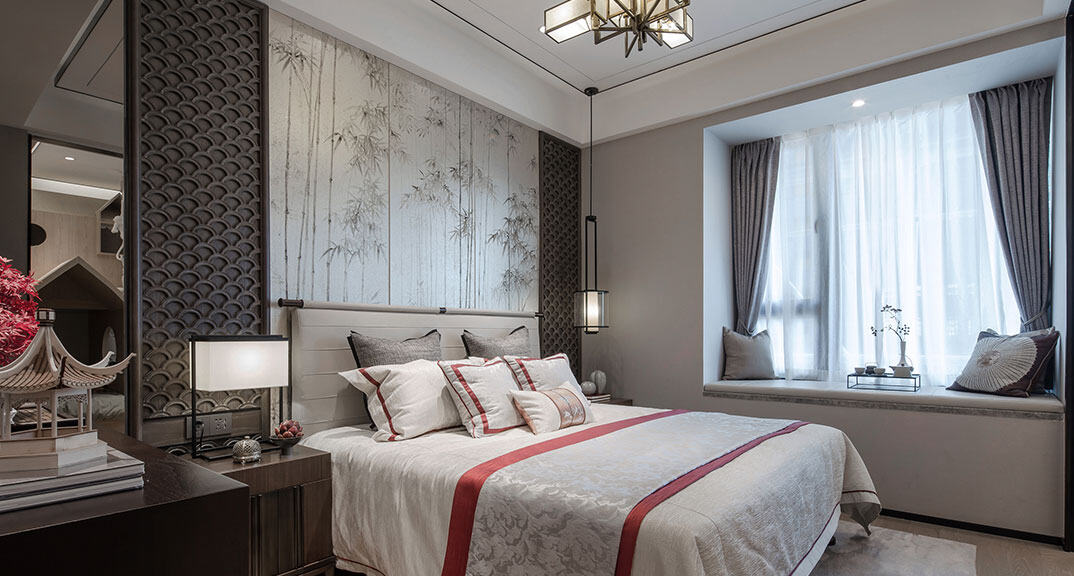 依云四季138㎡四室兩廳臥室新中式風(fēng)格戶型研發(fā)案例效果圖