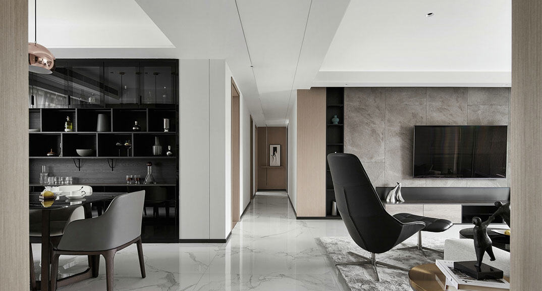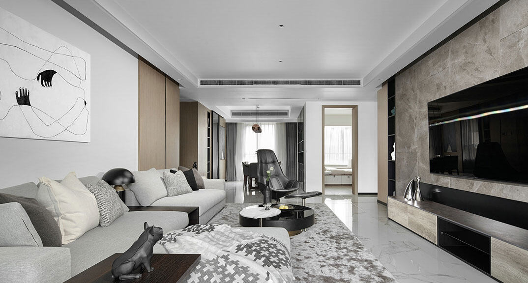 以簡潔、清晰和功能性為特征的室內(nèi)設(shè)計(jì);它主要強(qiáng)調(diào)了空間的簡化和精煉,追求線條簡單、空間通透、色彩明亮、材質(zhì)自然等特點(diǎn),注重形式與功能的結(jié)合。他們希望有一個(gè)時(shí)尚、現(xiàn)代的功能性空間,在整個(gè)空間的設(shè)計(jì)上用了暖灰調(diào)來與簡約的線條感來相呼應(yīng),能改造出一個(gè)通透、流暢的空間感。