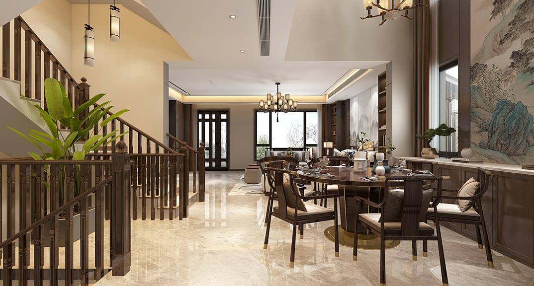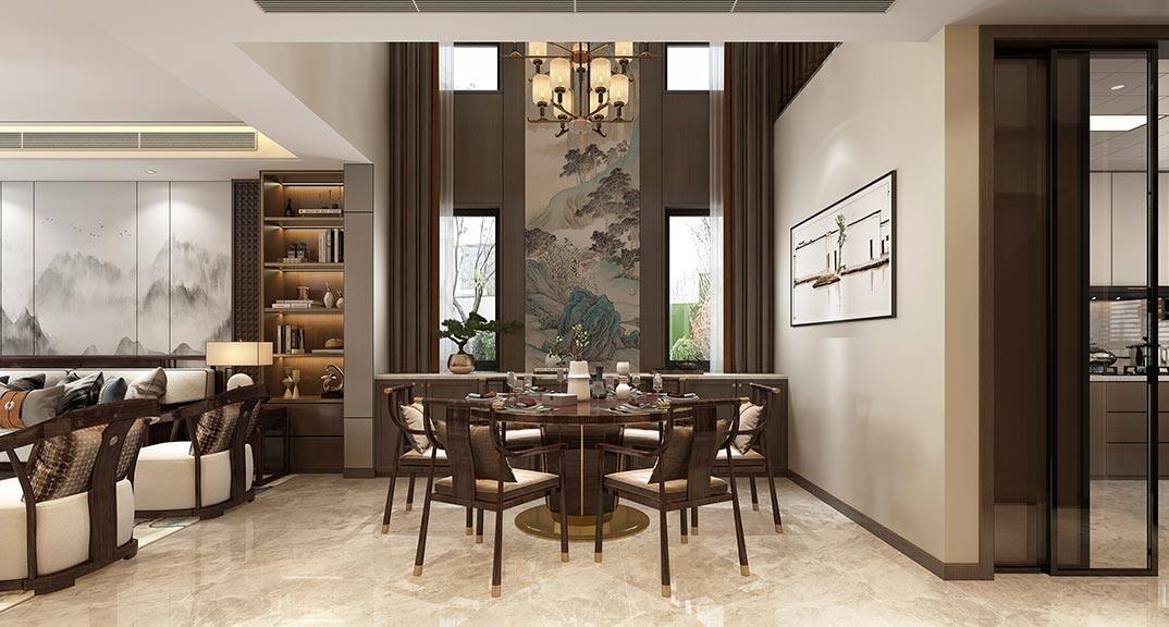太泉美域280㎡別墅餐廳新中式風(fēng)格裝修案例效果圖
