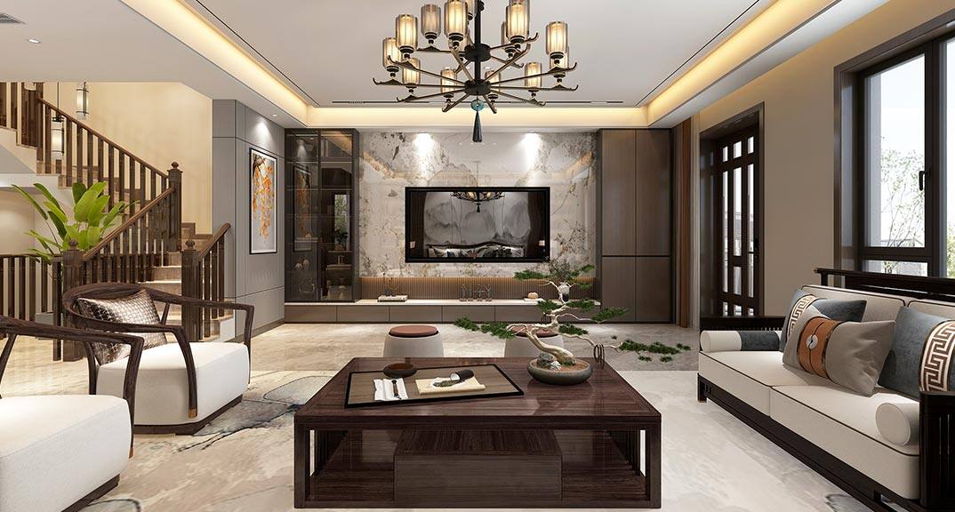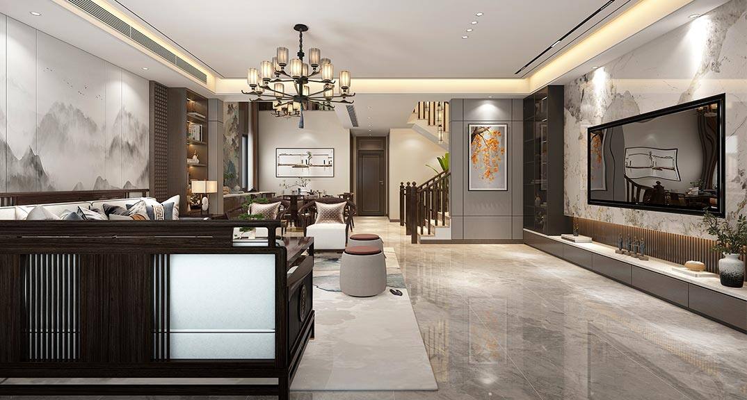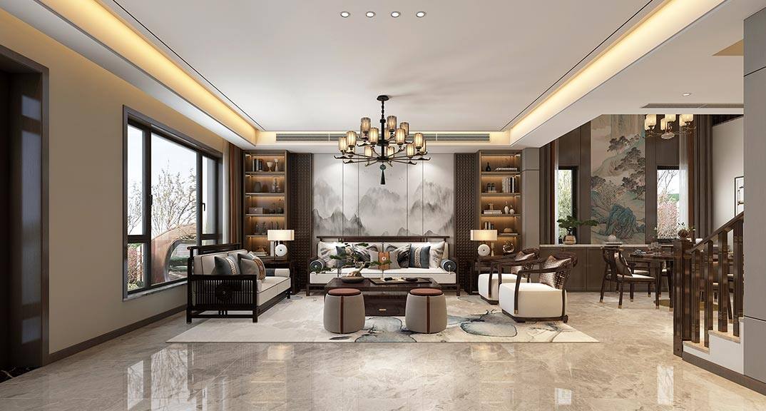 太泉美域280㎡別墅客廳沙發(fā)新中式風(fēng)格裝修案例效果圖