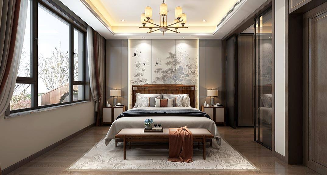 太泉美域280㎡別墅臥室新中式風(fēng)格裝修案例效果圖