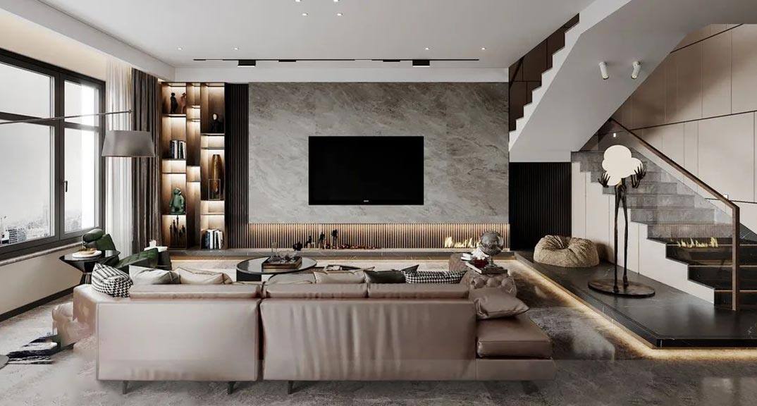 月?;▓@220㎡四室兩廳客廳電視現(xiàn)代簡(jiǎn)約風(fēng)格裝修案例效果圖