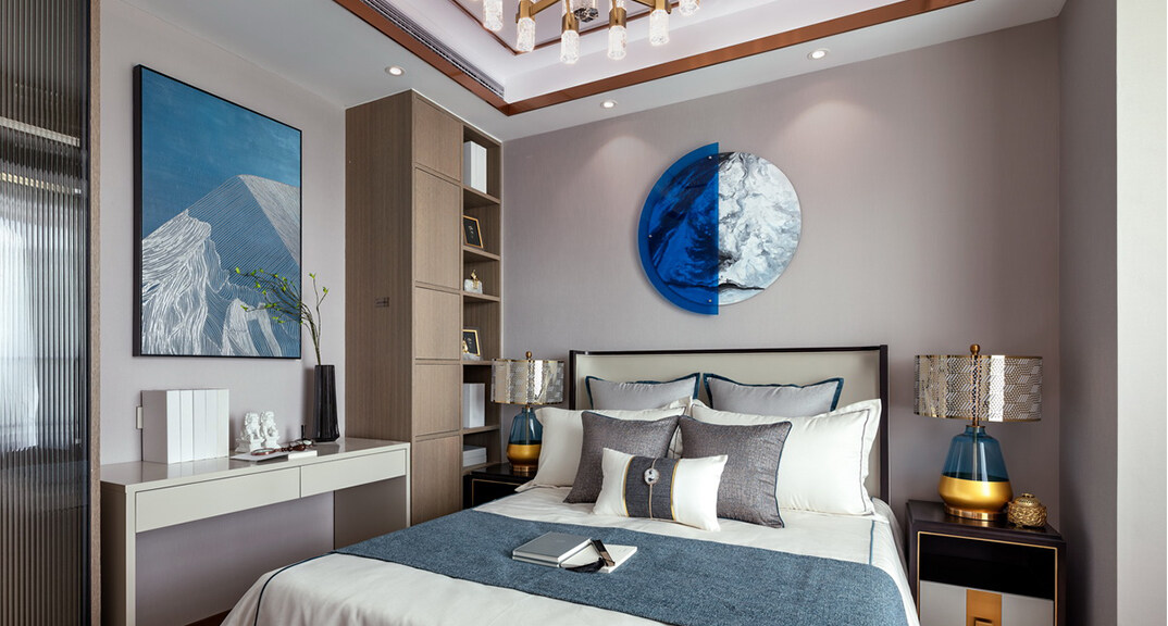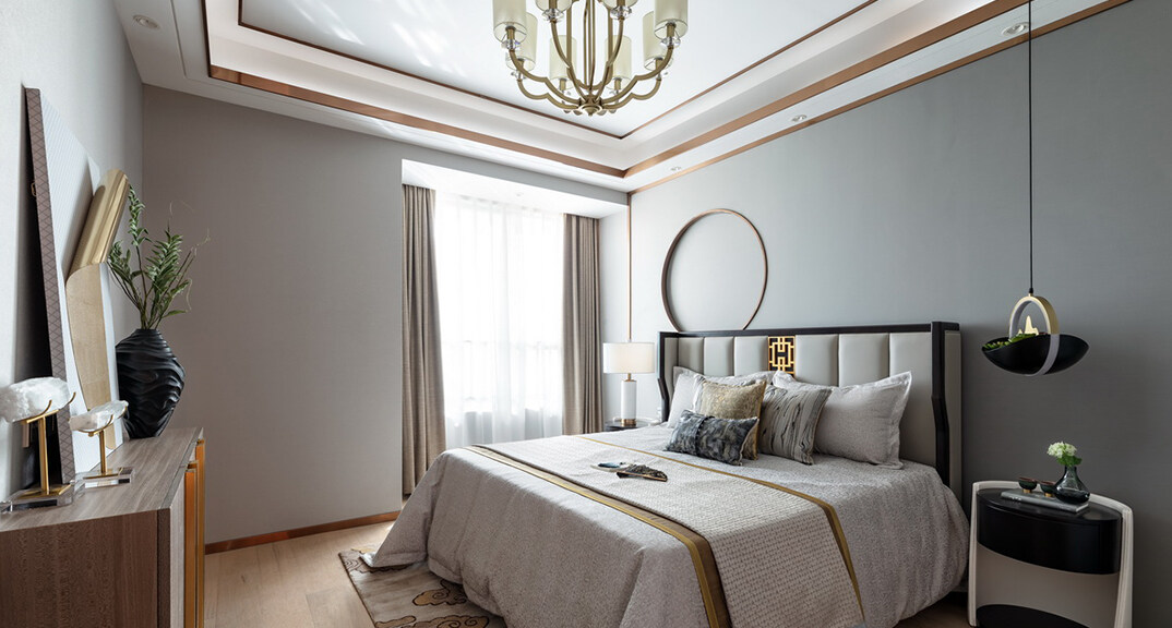 青特星城119㎡三室兩廳主臥新中式風格裝修案例效果圖