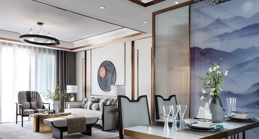 青特星城119㎡三室兩廳客餐廳新中式風格裝修案例效果圖