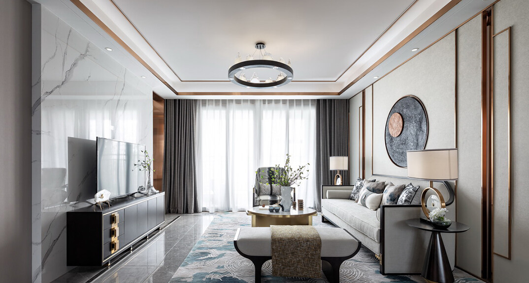 青特星城119㎡三室兩廳客廳新中式風格裝修案例效果圖