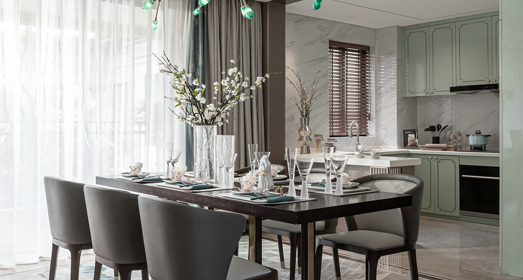 青特星城142㎡三室兩廳餐廳廚房新中式風(fēng)格裝修案例效果圖