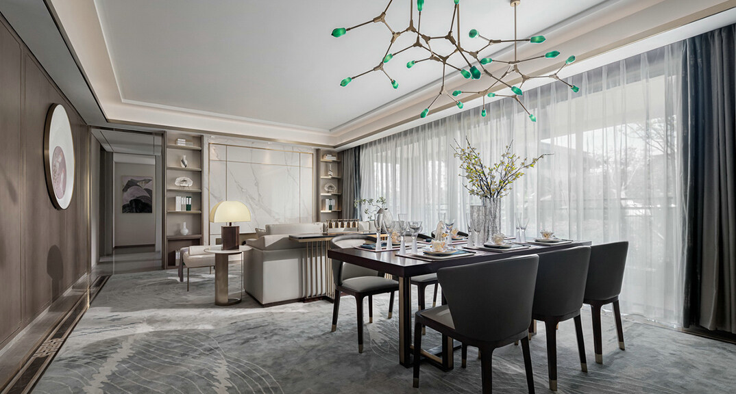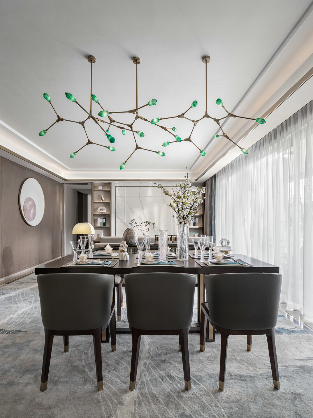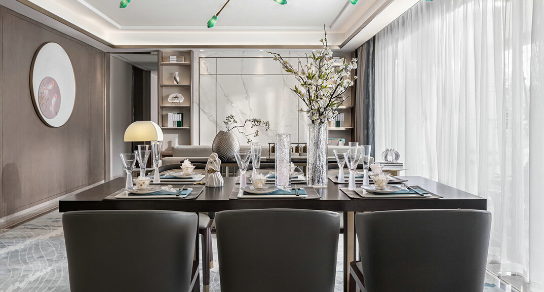 青特星城142㎡三室兩廳客餐廳新中式風(fēng)格裝修案例效果圖