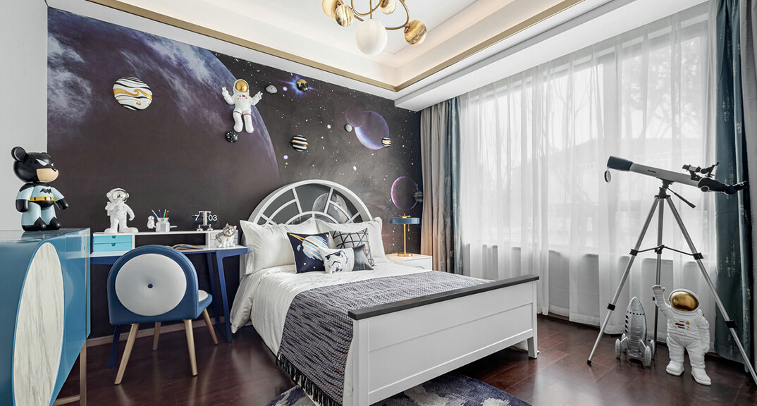 青特星城142㎡三室兩廳兒童房新中式風(fēng)格裝修案例效果圖
