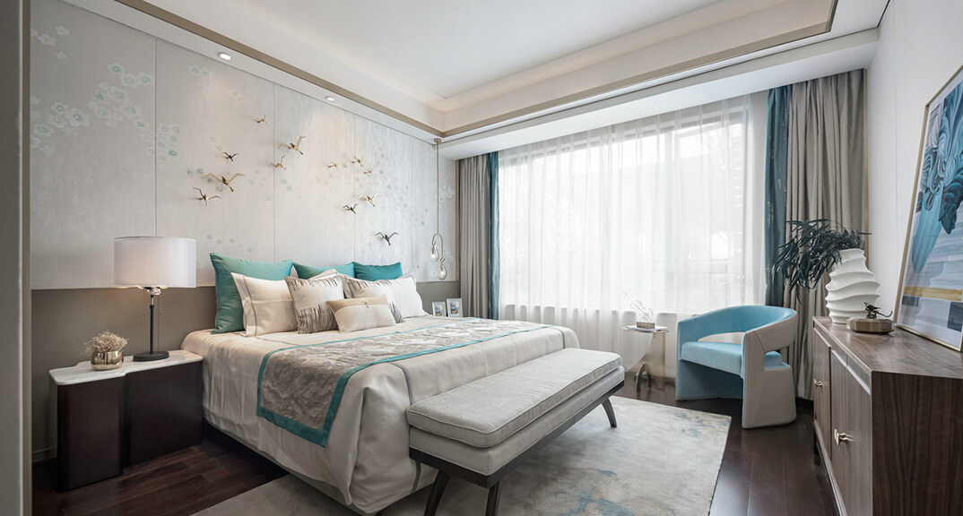青特星城142㎡三室兩廳主臥新中式風(fēng)格裝修案例效果圖