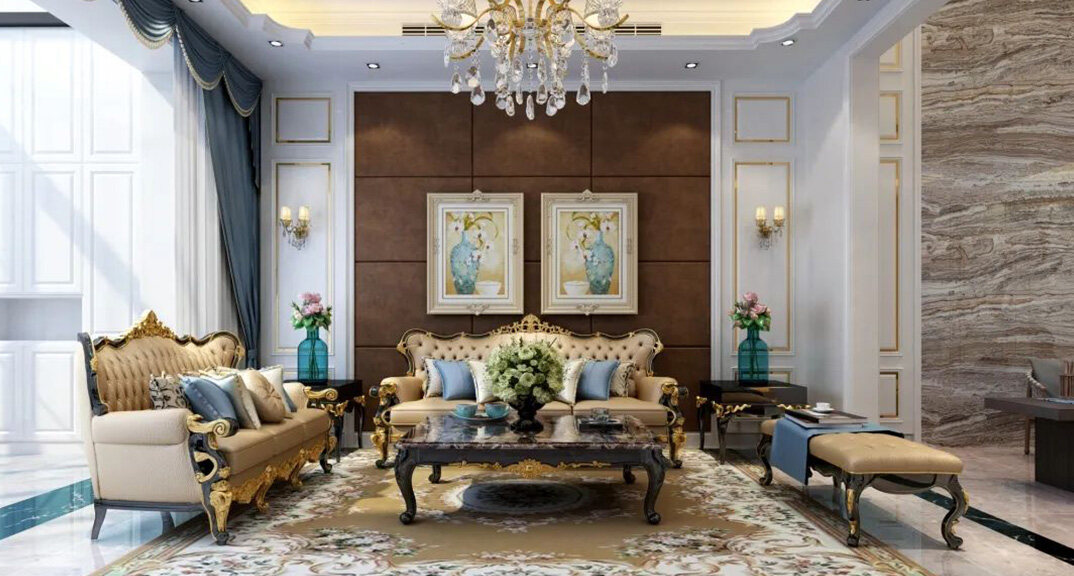 這是一套輕奢歐式風(fēng)格的裝修案例,復(fù)古、時(shí)尚、現(xiàn)代等多重元素的碰撞,讓居住者時(shí)時(shí)刻刻都有不同的思想迸發(fā),體會(huì)不一樣的生活情境。米色調(diào)地毯似一道道弧形海浪將沙發(fā)茶幾包裹其中,線條與線條交相呼應(yīng),讓室內(nèi)呈現(xiàn)出自由爛漫的狀態(tài)。