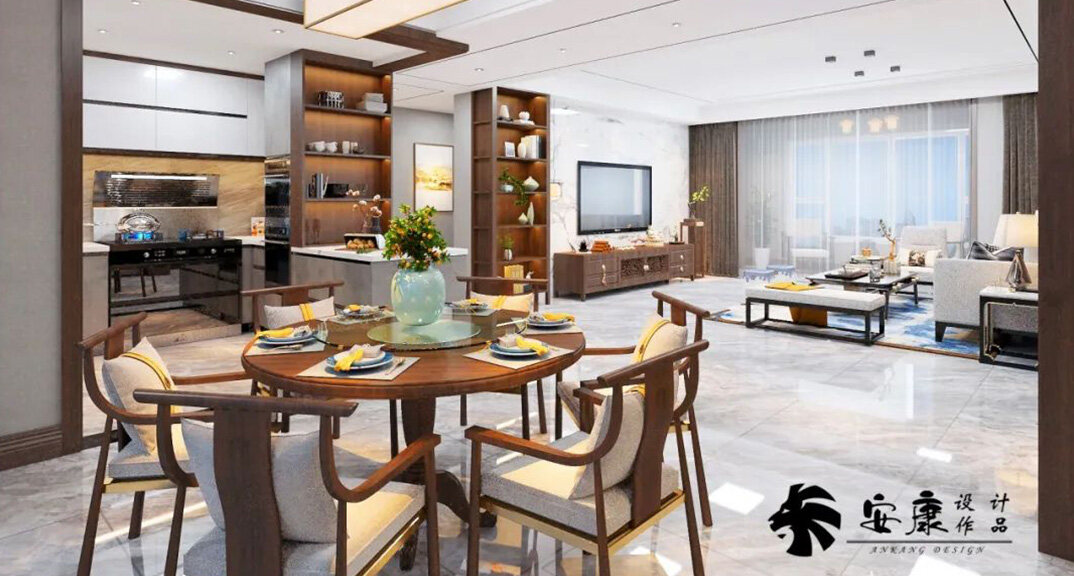 金域瀾庭180㎡四室兩廳餐廳新中式風格風格裝修案例效果圖