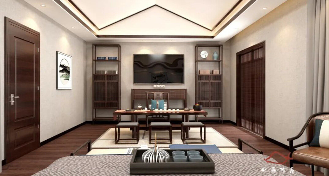 北海錦華352㎡別墅茶室新中式風(fēng)格裝修案例效果圖