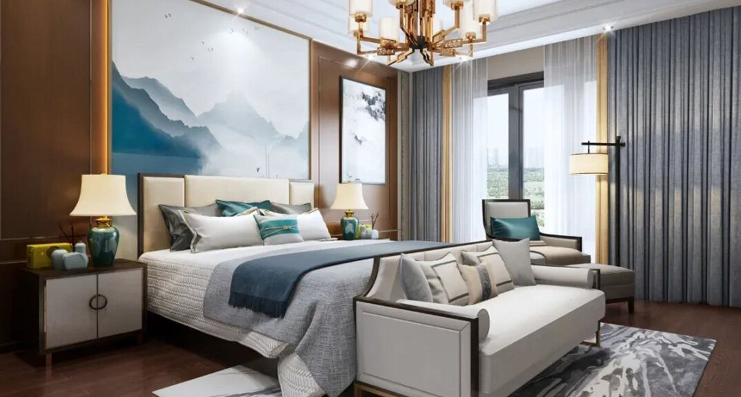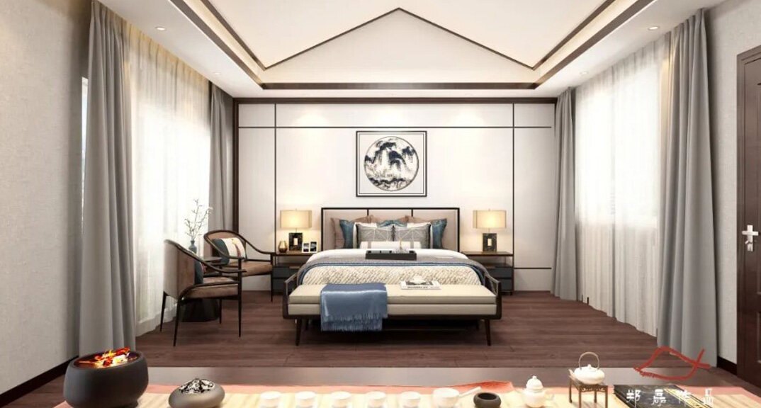 北海錦華352㎡別墅主臥新中式風(fēng)格裝修案例效果圖