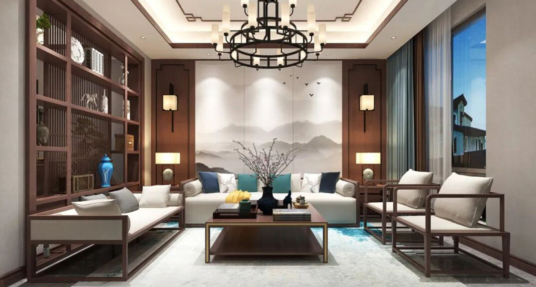 北海錦華352㎡別墅客廳沙發(fā)新中式風(fēng)格裝修案例效果圖