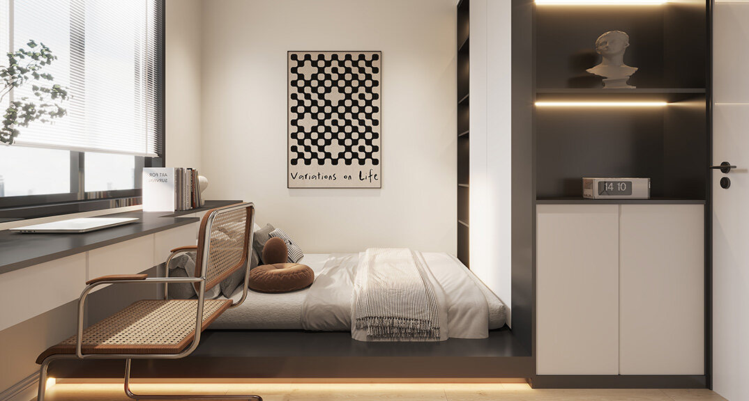現(xiàn)代簡(jiǎn)約風(fēng)格強(qiáng)調(diào)少即是多,舍棄不必要的裝飾元素,追求時(shí)尚和現(xiàn)代的簡(jiǎn)潔造型、愉悅色彩。與傳統(tǒng)風(fēng)格相比,現(xiàn)代簡(jiǎn)約用最直白的裝飾語(yǔ)言體現(xiàn)空間和家具營(yíng)造的氛圍,進(jìn)而賦予空間個(gè)性和寧?kù)o。