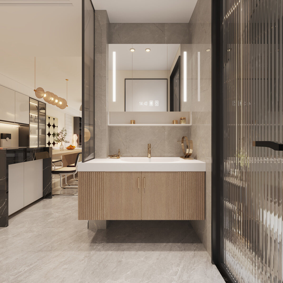 本案設(shè)計(jì)風(fēng)格為意式輕奢,拒絕了濃烈的色彩,以一種簡(jiǎn)單、純粹的設(shè)計(jì)語(yǔ)言,回歸生活的本質(zhì),留存給居住者更多生活想象的空間。 整體空間灰橙色、駝色、與淺暖灰色調(diào)展現(xiàn)輕奢低調(diào)的高級(jí)質(zhì)感,簡(jiǎn)約時(shí)尚的家具又增添了一份現(xiàn)代感,重新梳理了空間功能和尺寸,客廳陽(yáng)臺(tái)一體化設(shè)計(jì),最大限度引入自然光,高級(jí)灰搭配中性色系木飾面,打造一個(gè)舒適的高品質(zhì)空間。在空間設(shè)計(jì)與色彩配搭上,精準(zhǔn)地把控節(jié)奏,用設(shè)計(jì)表達(dá)空間的包容性,更多的是通過(guò)人性化思考,創(chuàng)造一個(gè)功能性完整的舒適生活空間。大塊的木飾面、金屬元素和燈 光的碰撞搭配,凸顯出強(qiáng)大張力,共同打造出意式輕奢腔調(diào)十足的時(shí)尚與質(zhì)感。