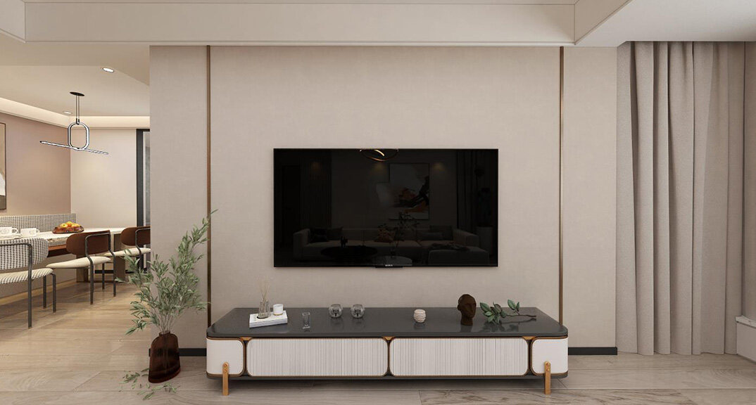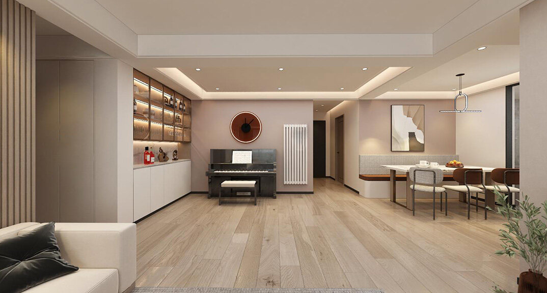 本案整體以現(xiàn)代中式風(fēng)格為主,既有現(xiàn)代風(fēng)格簡(jiǎn)約、明朗的線條,又有中國(guó)傳統(tǒng)內(nèi)涵與韻味。墻面大面積使用暖色烘托整體氛圍,融洽中式與現(xiàn)代簡(jiǎn)約兩種風(fēng)格??臻g更寬闊舒適玄關(guān)收納、玄關(guān)與干區(qū)相結(jié)合,既解放的外衛(wèi)的空間客廳電視背景是一面裝飾柜,豐富了空間,增加了收納和儲(chǔ)物,美觀又實(shí)用。