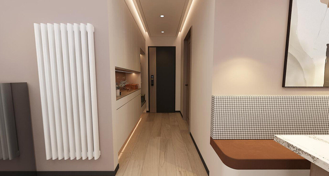 本案設(shè)計(jì)風(fēng)格為意式輕奢,拒絕了濃烈的色彩,以一種簡(jiǎn)單、純粹的設(shè)計(jì)語(yǔ)言,回歸生活的本質(zhì),留存給居住者更多生活想象的空間。 整體空間灰橙色、駝色、與淺暖灰色調(diào)展現(xiàn)輕奢低調(diào)的高級(jí)質(zhì)感,簡(jiǎn)約時(shí)尚的家具又增添了一份現(xiàn)代感,重新梳理了空間功能和尺寸,客廳陽(yáng)臺(tái)一體化設(shè)計(jì),最大限度引入自然光,高級(jí)灰搭配中性色系木飾面,打造一個(gè)舒適的高品質(zhì)空間。在空間設(shè)計(jì)與色彩配搭上,精準(zhǔn)地把控節(jié)奏,用設(shè)計(jì)表達(dá)空間的包容性,更多的是通過人性化思考,創(chuàng)造一個(gè)功能性完整的舒適生活空間。大塊的木飾面、金屬元素和燈 光的碰撞搭配,凸顯出強(qiáng)大張力,共同打造出意式輕奢腔調(diào)十足的時(shí)尚與質(zhì)感。
