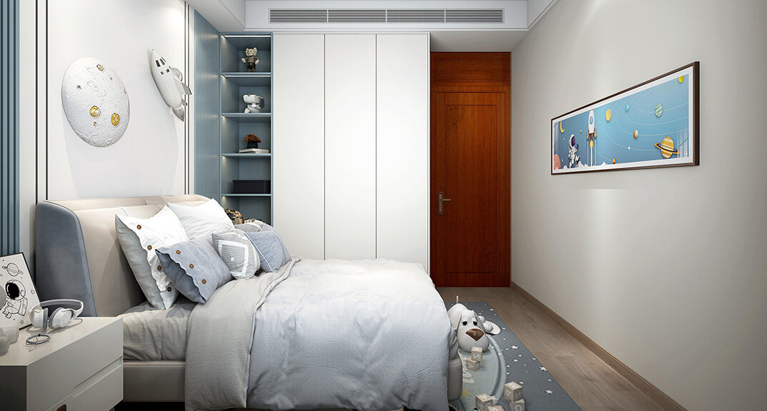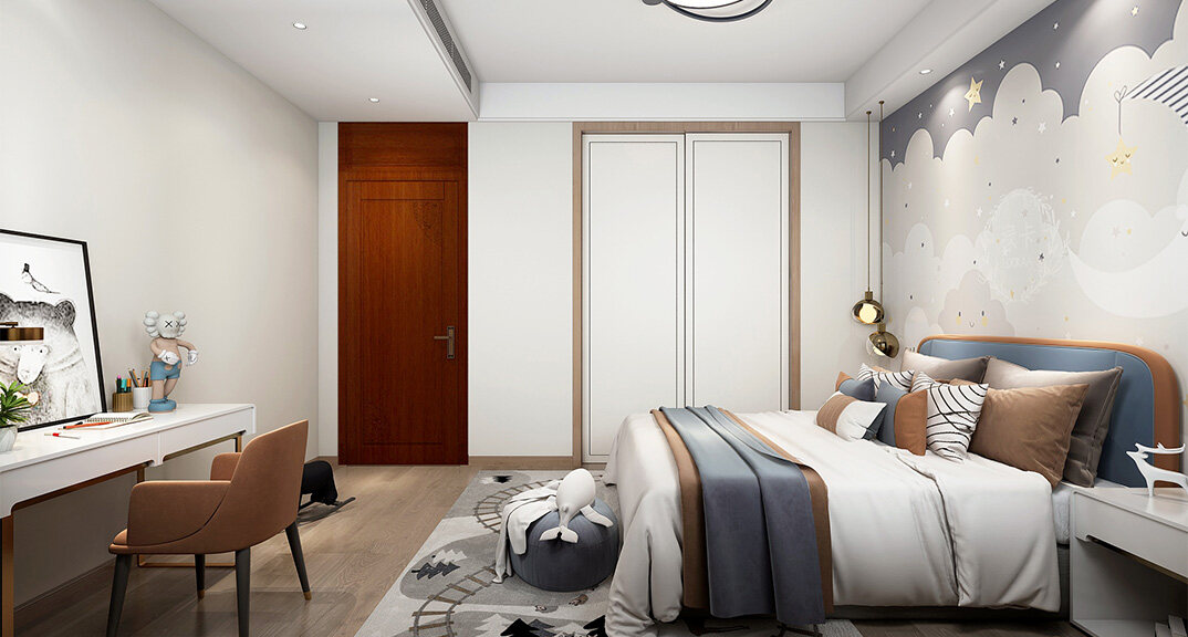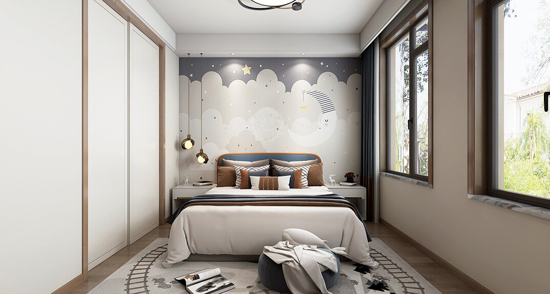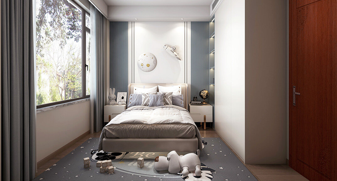 嶗山官邸1000㎡別墅二樓西兒童房新中式風(fēng)格裝修案例效果圖