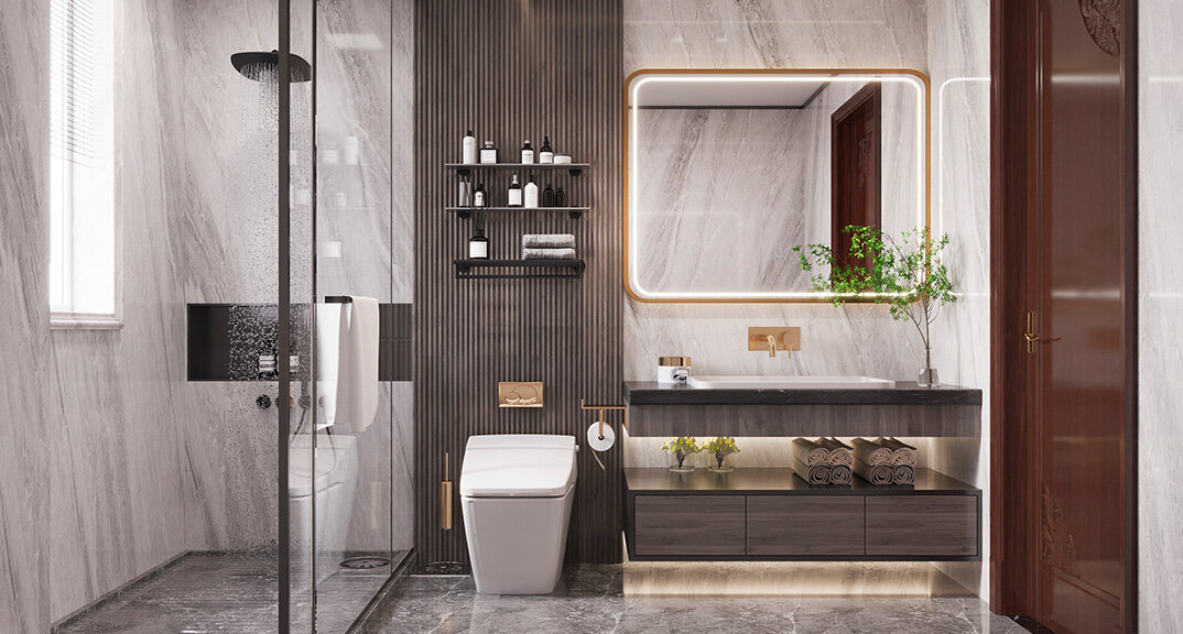 嶗山官邸1000㎡別墅一樓衛(wèi)生間新中式風(fēng)格裝修案例效果圖