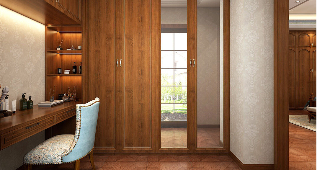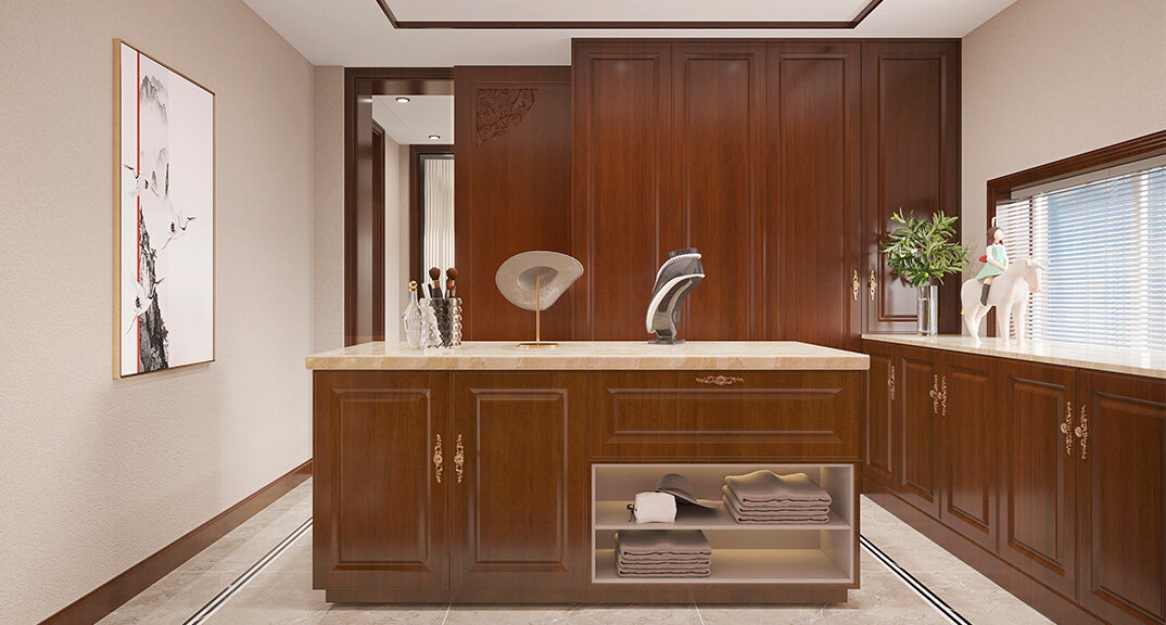 嶗山官邸1000㎡別墅四樓衣帽間新中式風(fēng)格裝修案例效果圖