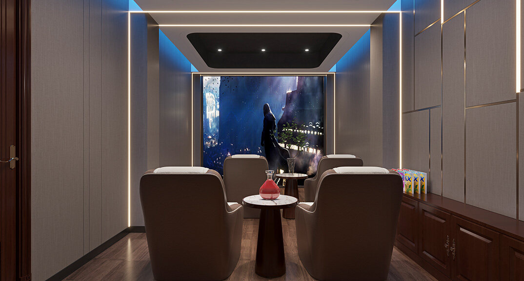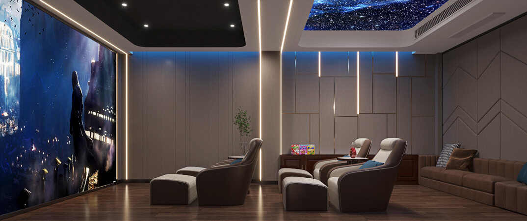 嶗山官邸1000㎡別墅負(fù)一層影音室新中式風(fēng)格裝修案例效果圖
