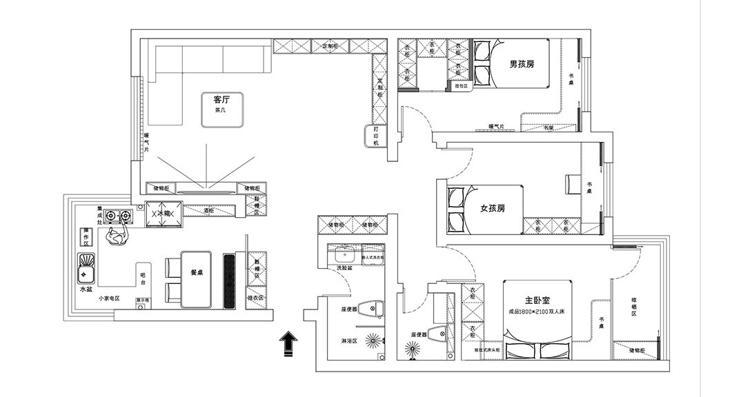 本案業(yè)主是一對(duì)工薪階層平時(shí)沒(méi)有太多時(shí)間,買(mǎi)了一套老方案子,對(duì)收納空間要求比較高還有一對(duì)兒女,所以在空間設(shè)計(jì)上要多下功夫。整體的風(fēng)格我們是使用了原木輕奢風(fēng)格,讓整個(gè)空間干凈明亮?‍舒適,吊頂使用了板帶的設(shè)計(jì),讓我們的層高顯的比較高一些,不會(huì)很壓抑