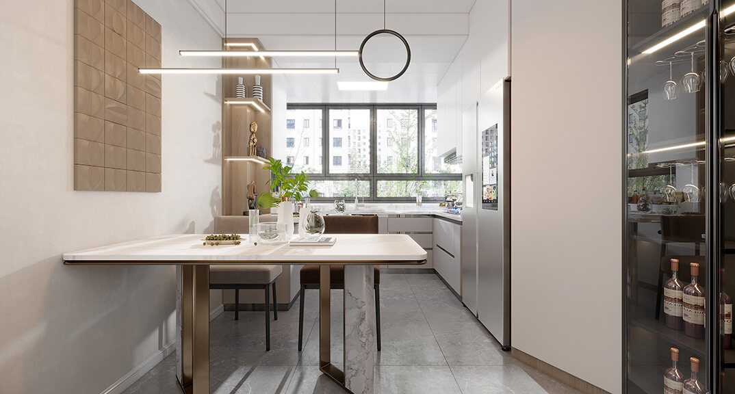 南京路老房翻新123㎡三室一廳餐廳輕奢風(fēng)格裝修案例效果圖