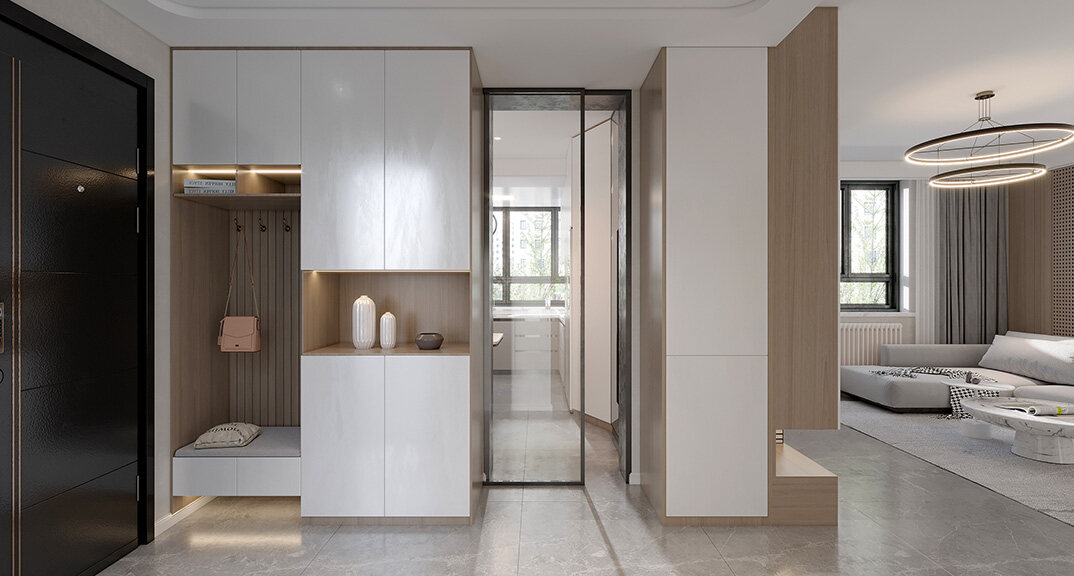 南京路老房翻新123㎡三室一廳入戶(hù)玄關(guān)輕奢風(fēng)格裝修案例效果圖