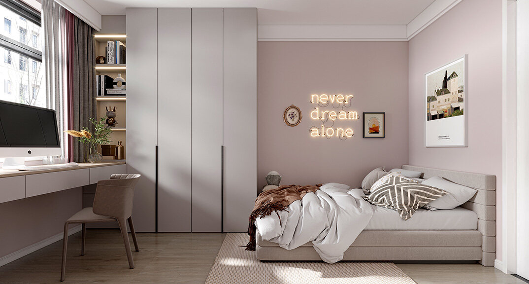 南京路老房翻新123㎡三室一廳女孩房輕奢風(fēng)格裝修案例效果圖