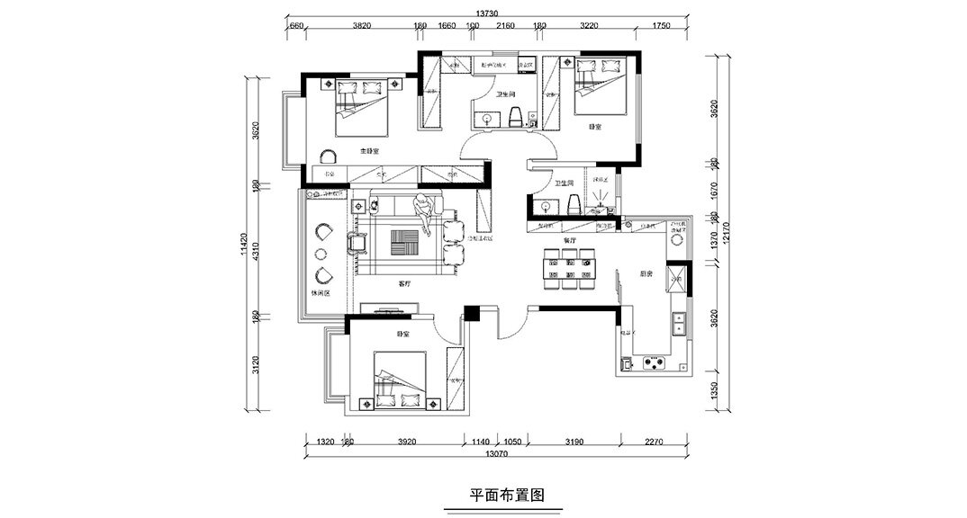 海信·依云小鎮(zhèn)240㎡四室兩廳戶型平面布局圖
