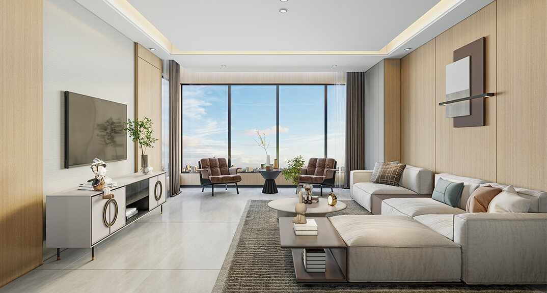 海信·依云小鎮(zhèn)240㎡四室兩廳客廳簡約風(fēng)格裝修案例效果圖