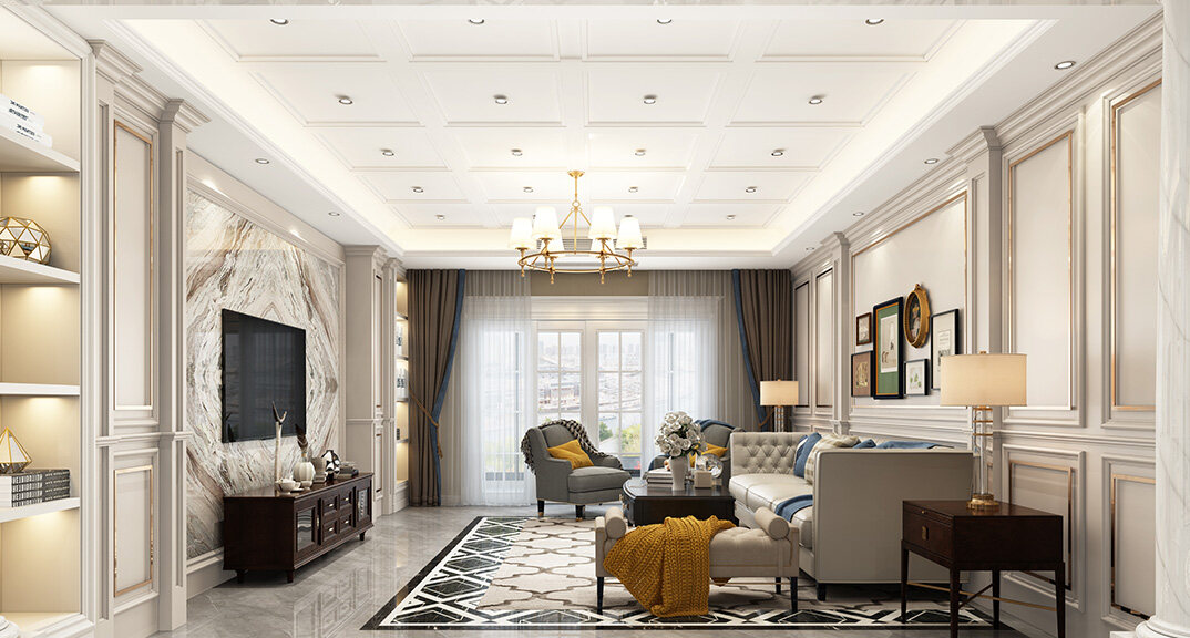 卓越天元320㎡平層客廳歐式風(fēng)格裝修案例效果圖