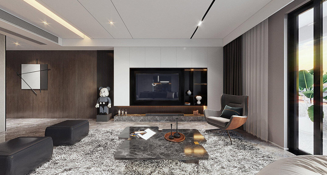 本案設(shè)計(jì)風(fēng)格為意式輕奢,拒絕了濃烈的色彩,以一種簡單、純粹的設(shè)計(jì)語言,回歸生活的本質(zhì),留存給居住者更多生活想象的空間。 整體空間灰橙色、駝色、與淺暖灰色調(diào)展現(xiàn)輕奢低調(diào)的高級質(zhì)感,簡約時(shí)尚的家具又增添了一份現(xiàn)代感,重新梳理了空間功能和尺寸,客廳陽臺(tái)一體化設(shè)計(jì),最大限度引入自然光,高級灰搭配中性色系木飾面,打造一個(gè)舒適的高品質(zhì)空間。在空間設(shè)計(jì)與色彩配搭上,精準(zhǔn)地把控節(jié)奏,用設(shè)計(jì)表達(dá)空間的包容性,更多的是通過人性化思考,創(chuàng)造一個(gè)功能性完整的舒適生活空間。大塊的木飾面、金屬元素和燈 光的碰撞搭配,凸顯出強(qiáng)大張力,共同打造出意式輕奢腔調(diào)十足的時(shí)尚與質(zhì)感。