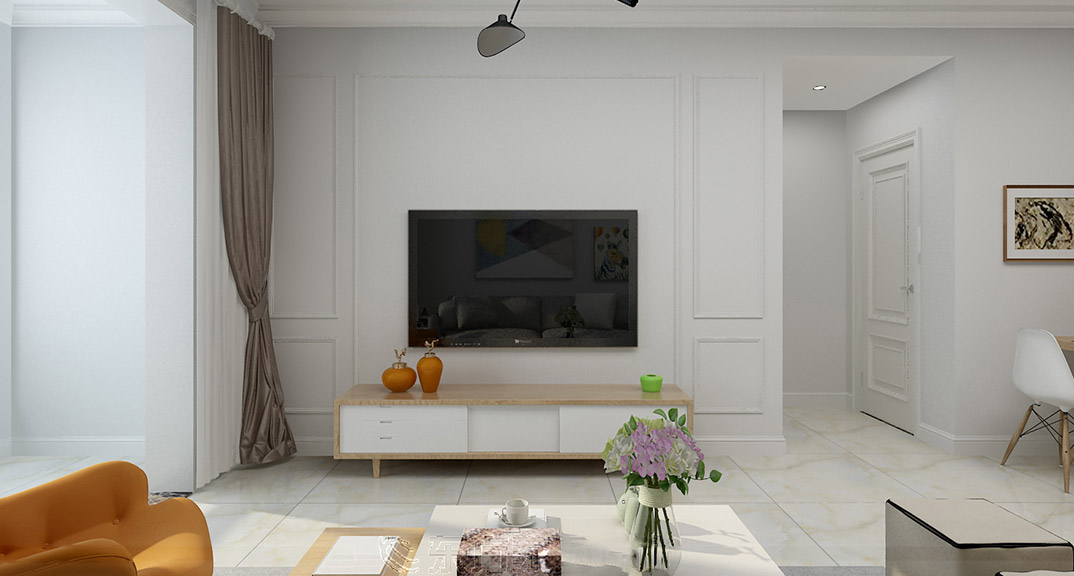 永利國際87㎡兩室兩廳客廳電視現(xiàn)代風(fēng)格裝修案例效果圖
