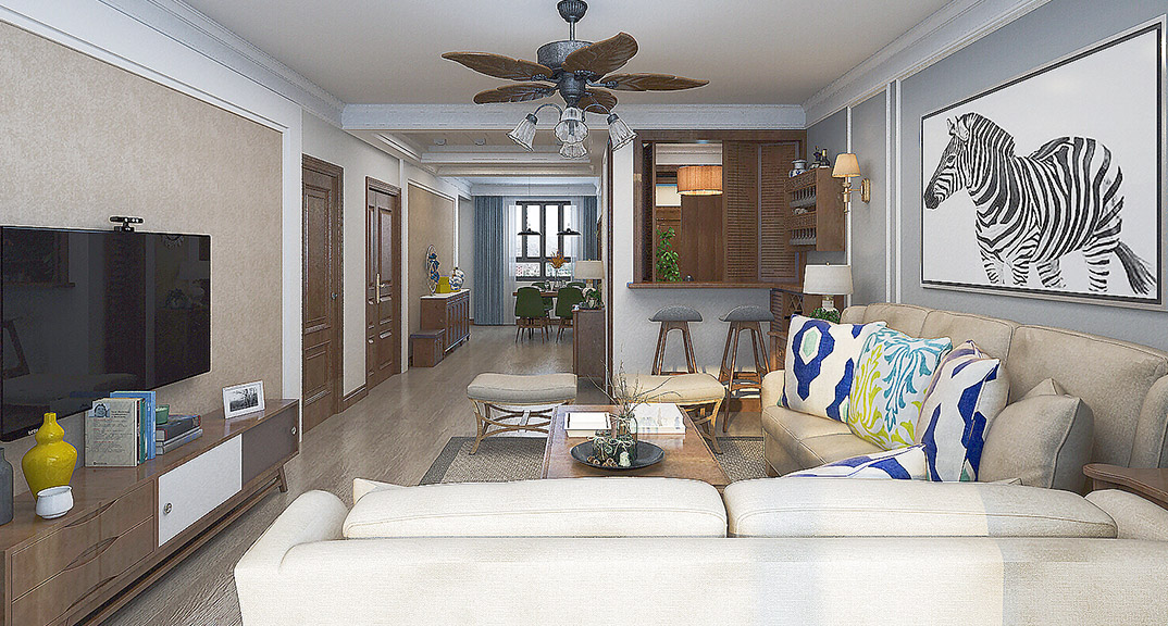 以現(xiàn)代風(fēng)格為主調(diào),主要色彩是米色、淺咖色、白色。在總體布局方面滿足寬敞明亮的需求,注重居室空間的布局與使用功能的完美結(jié)合。整體簡約又不失設(shè)計(jì)感,開放式布局空間聯(lián)通,動(dòng)線流暢??蛷d米灰色系的沙發(fā),造型簡約,搭配材質(zhì)柔軟的軟裝,使客廳充滿閑話自在的空間氛圍。