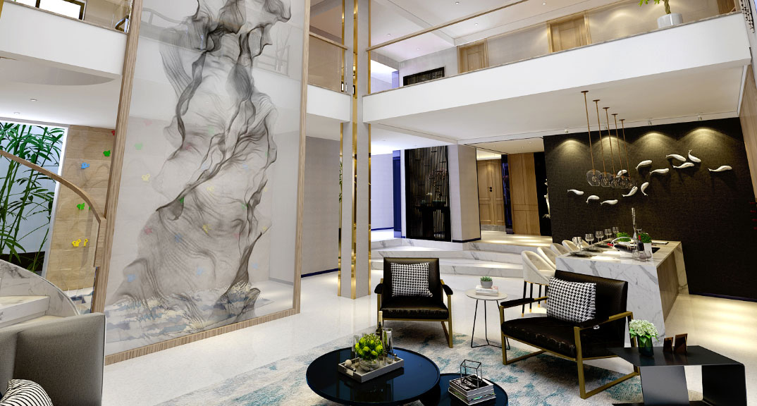 名悅山莊700㎡獨棟別墅負一層會客廳港式風格裝修案例效果圖