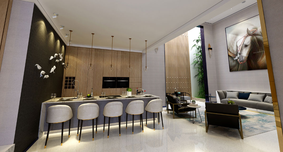 名悅山莊700㎡獨棟別墅負一層西廚港式風格裝修案例效果圖