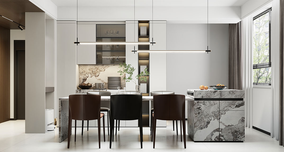銀澳花園120㎡兩室一廳餐廳輕奢風格裝修案例效果圖